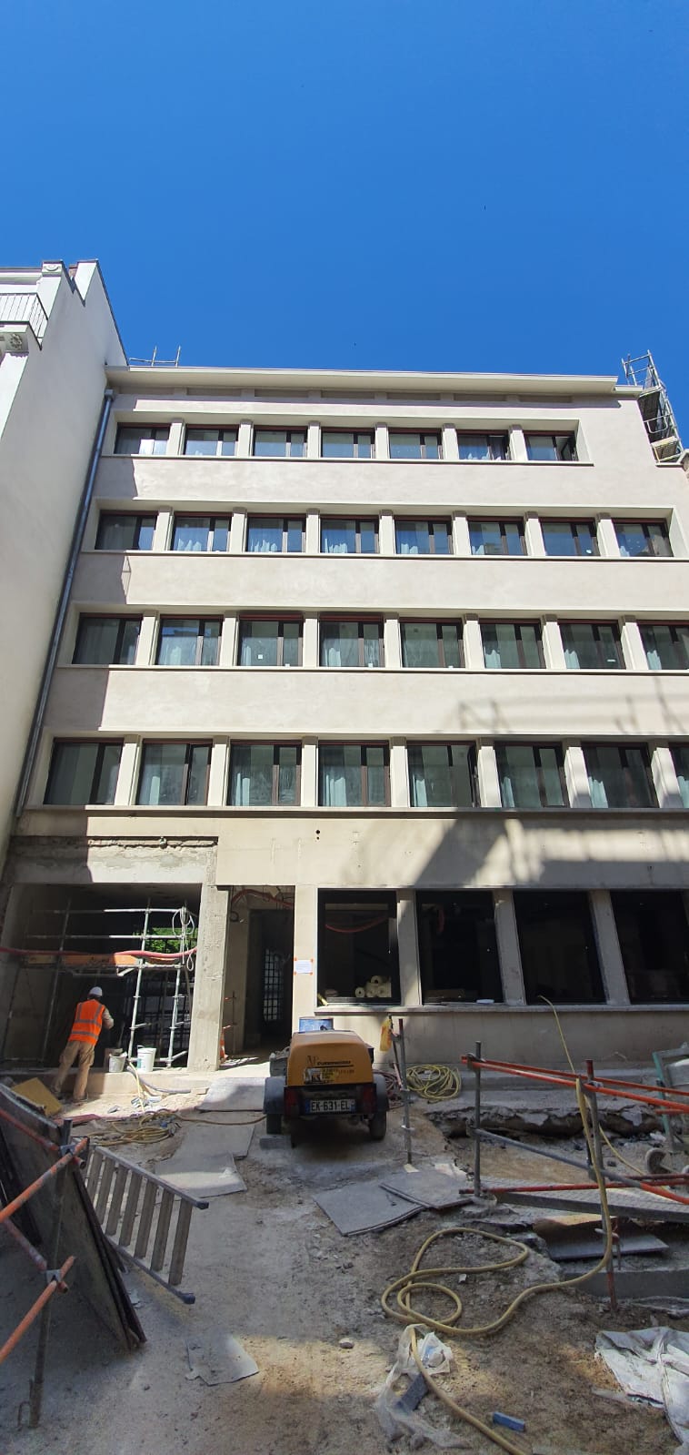 Réalisation du ravalement d'un immeuble à Paris 14ème, d'une surface de 2 300 m² avec une finition talochée d'aspect marbré à la demande de l'architecte pour donner un aspect naturel et contemporain !